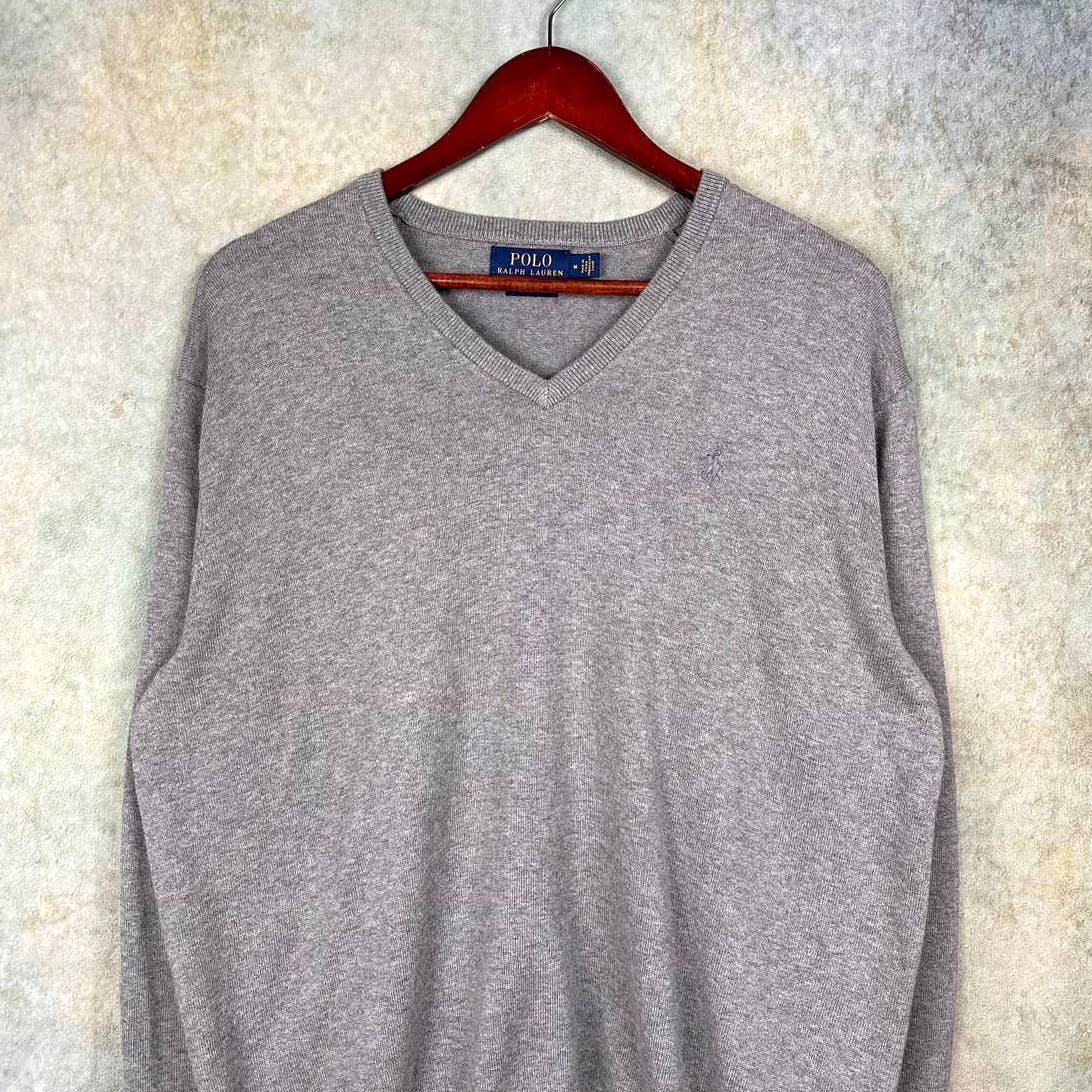 - Gray V Neck pullover PRL pima cotton knitted sweater