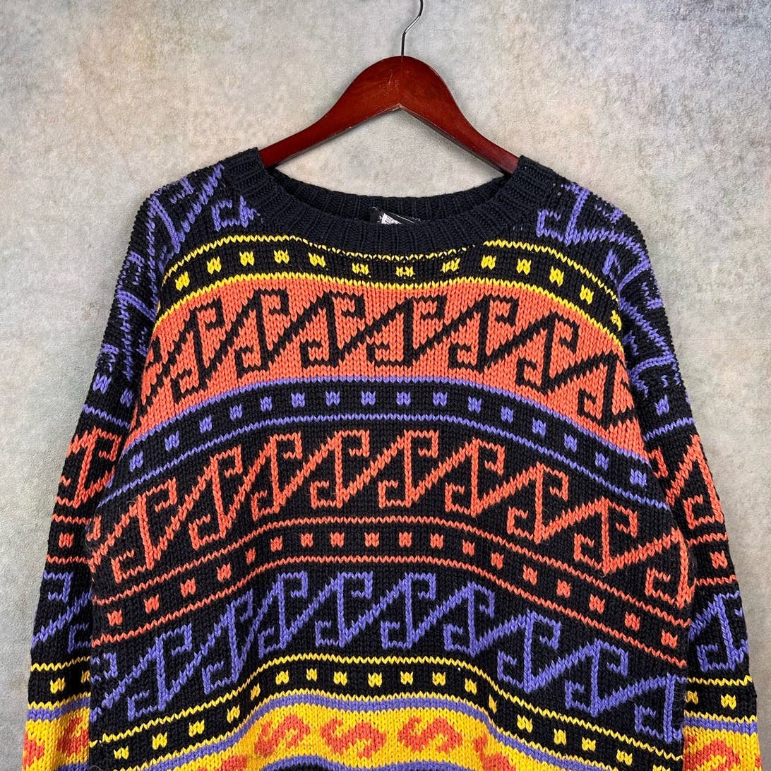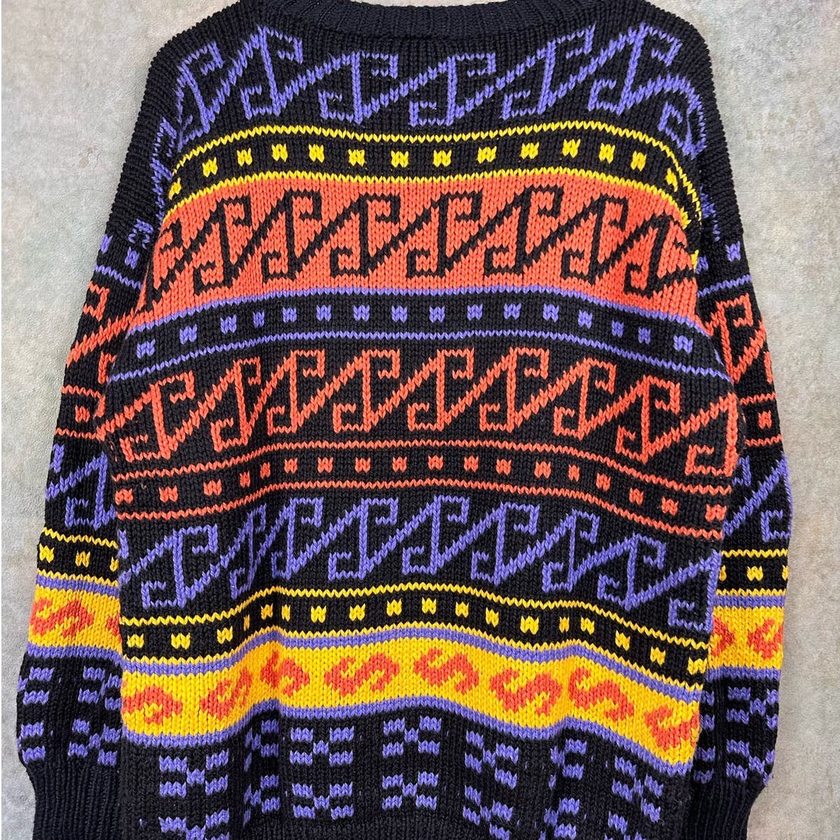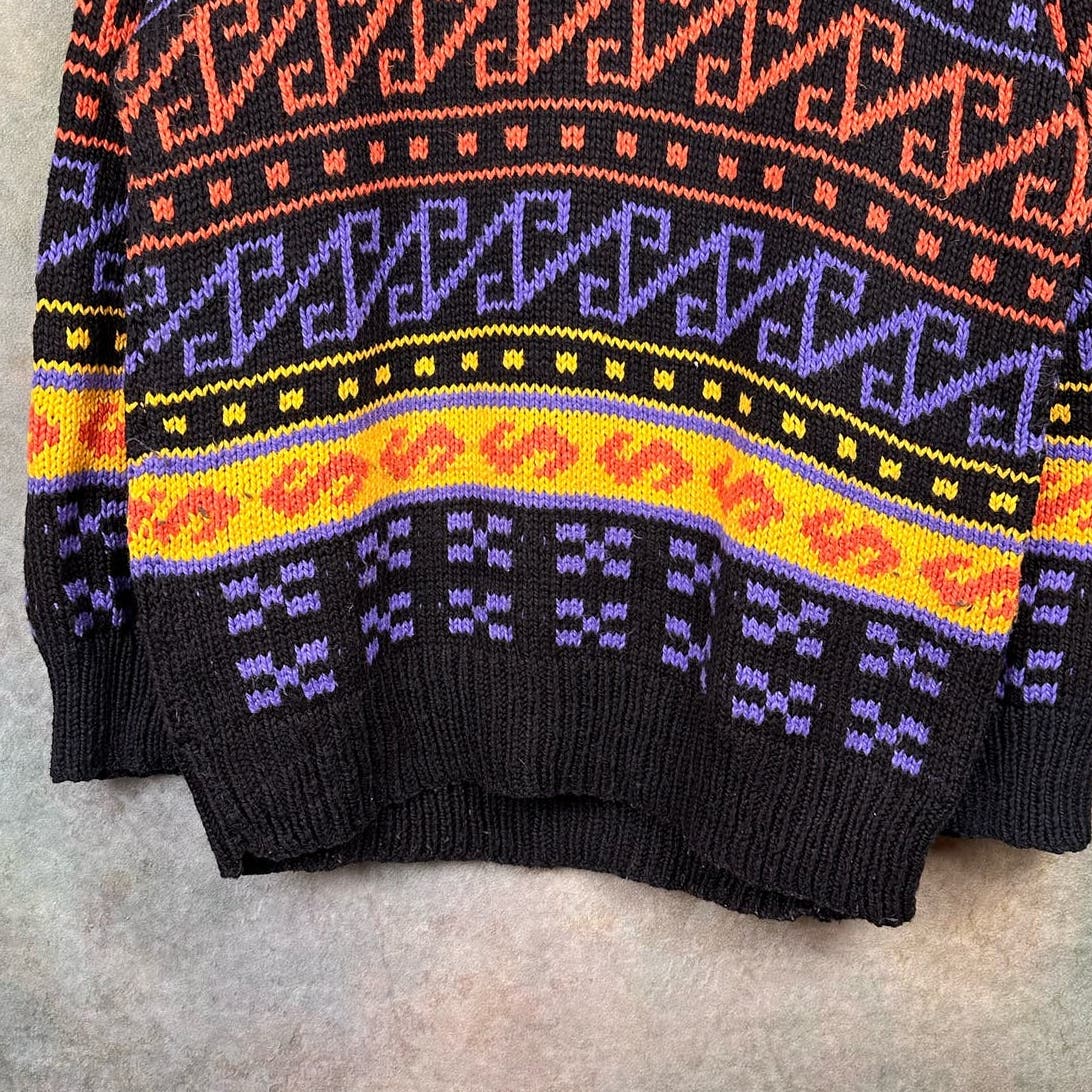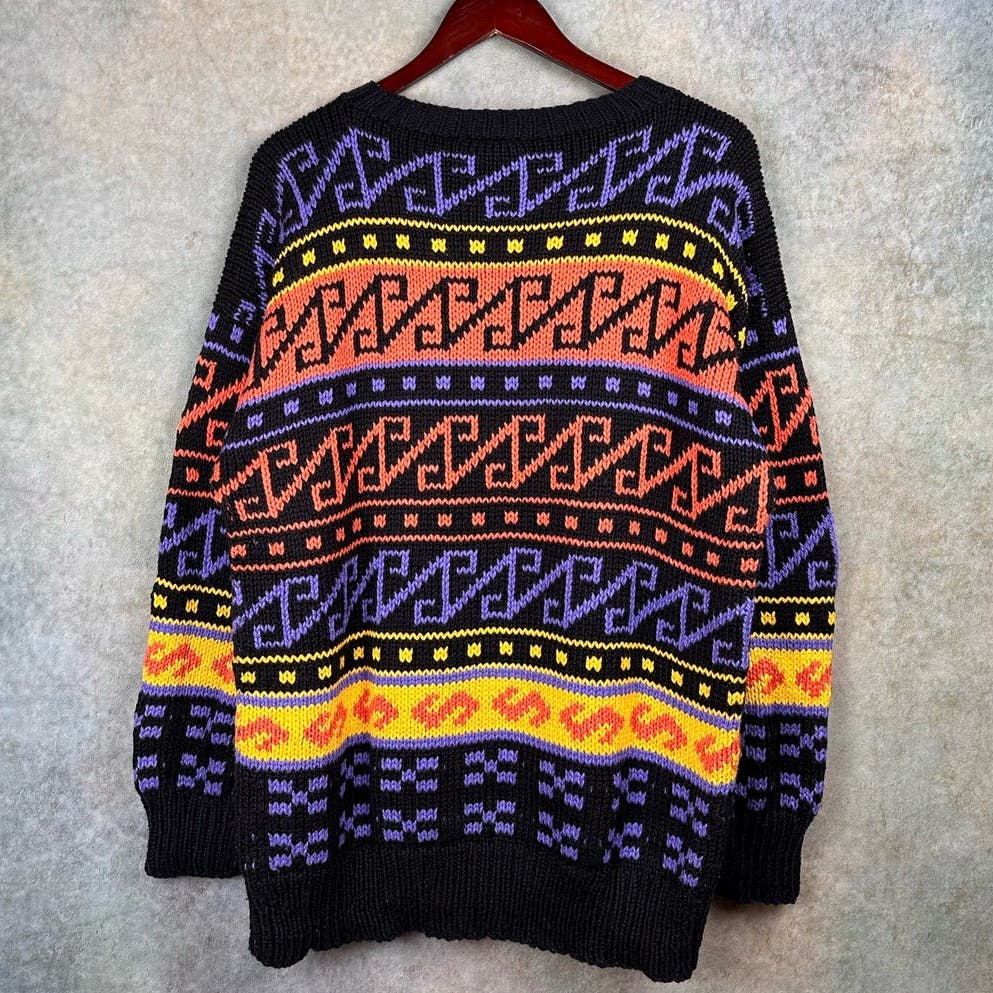 - 90s purple, yellow, orange, & black Abstract print crewneck knit sweater