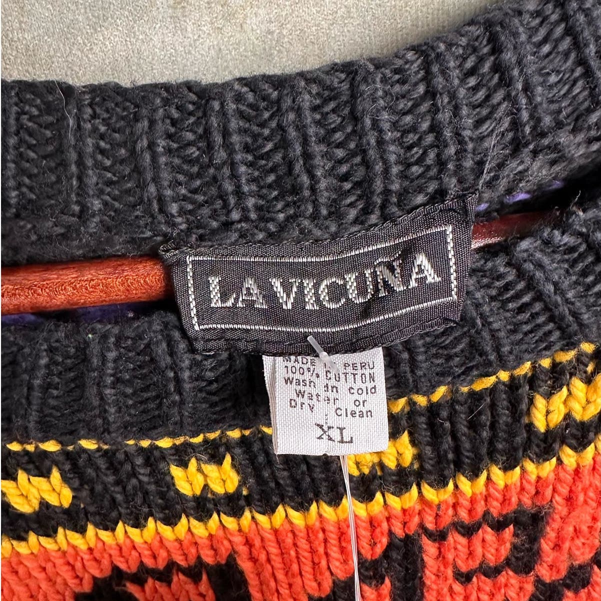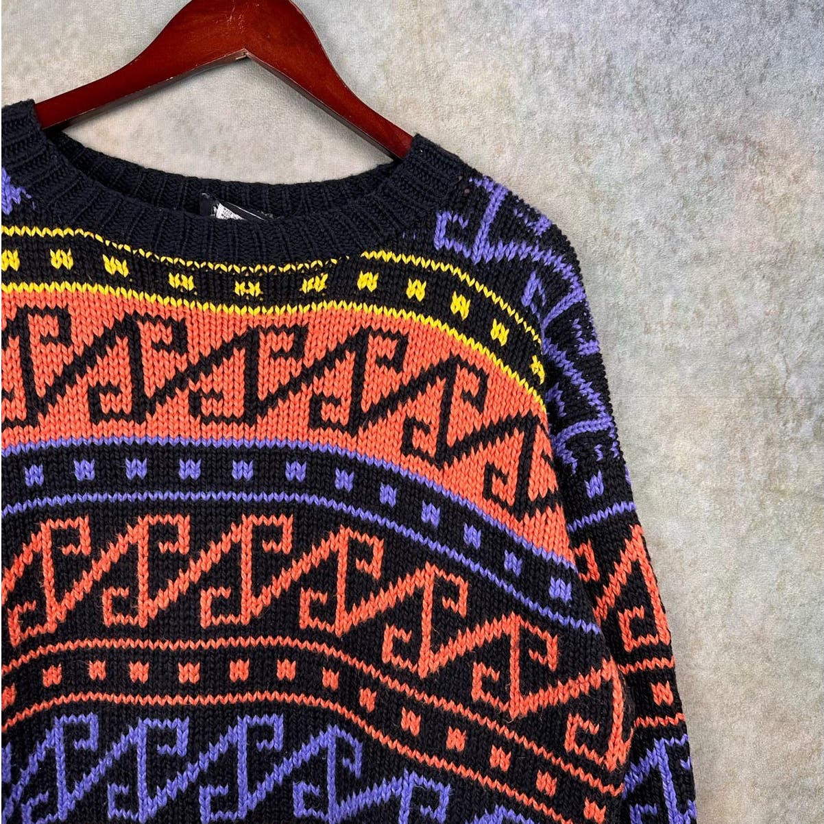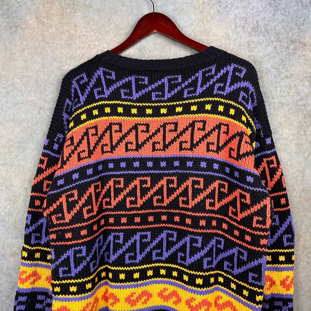 - 90s purple, yellow, orange, & black Abstract print crewneck knit sweater