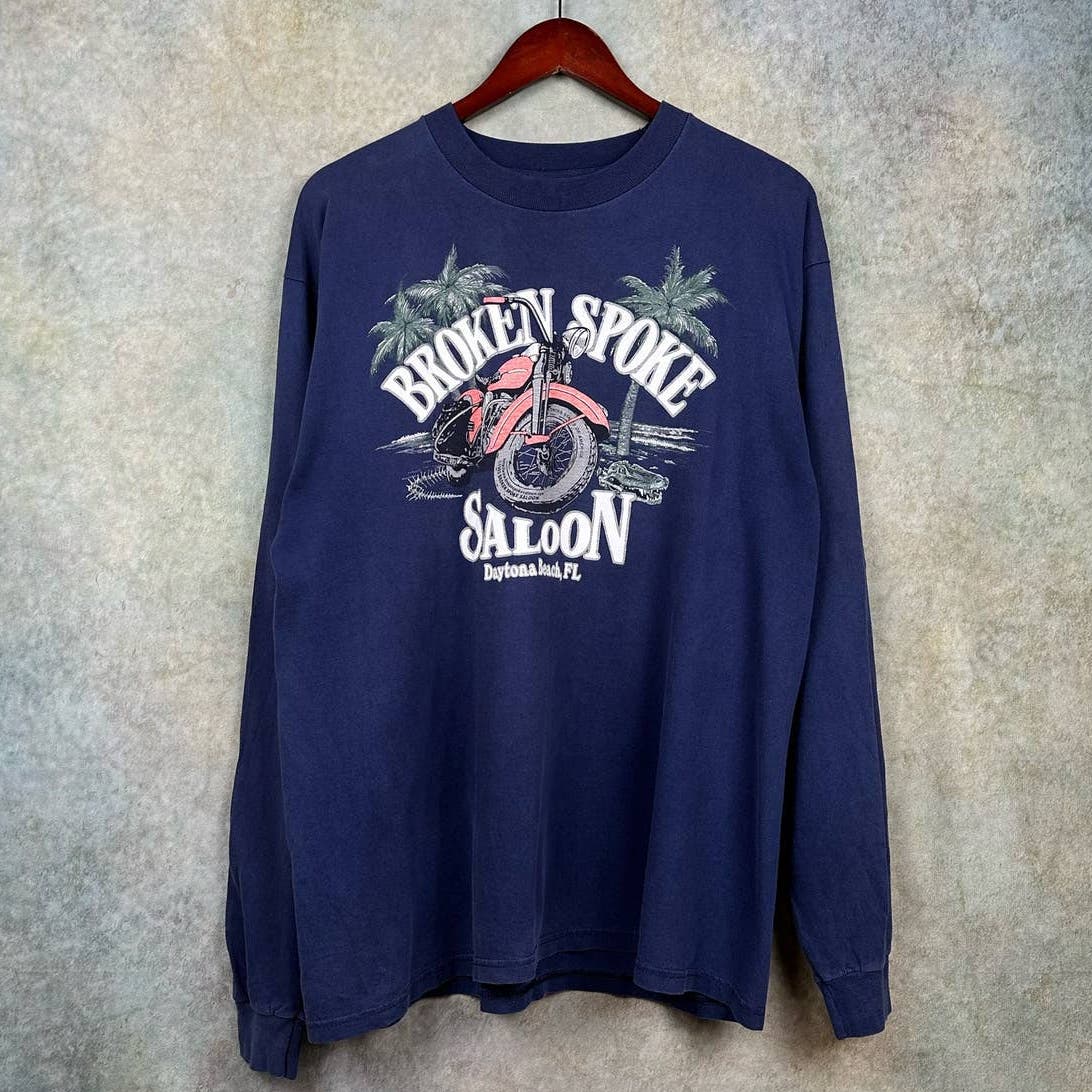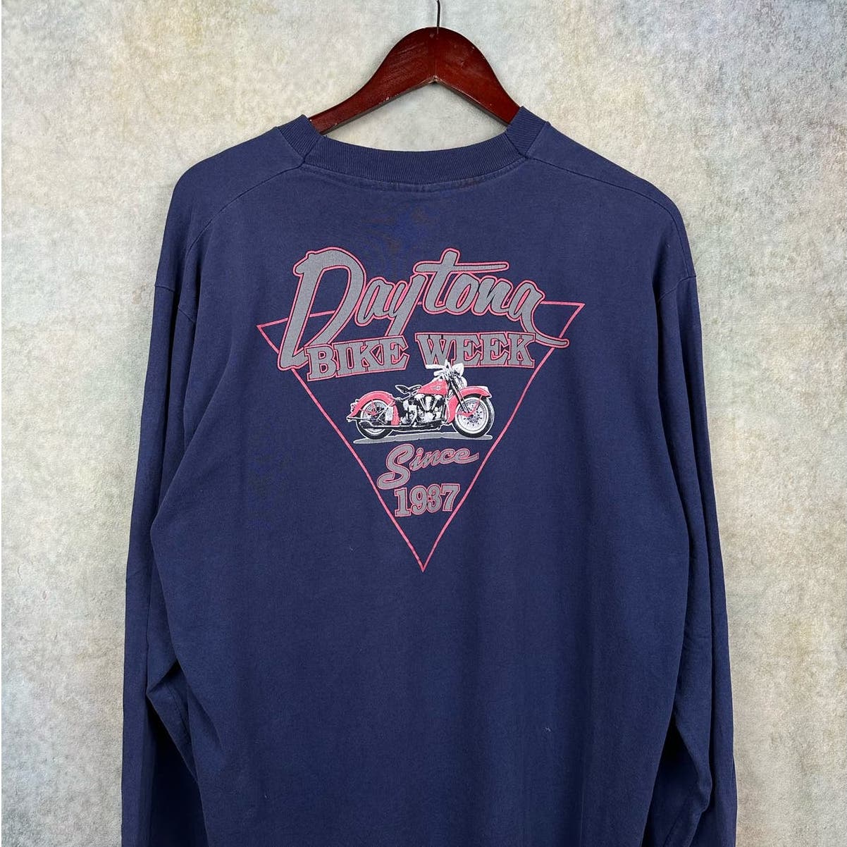 Vintage 90s Daytona Bike Week Long Sleeve Shirt Sz XL Navy Saloon Biker Florida