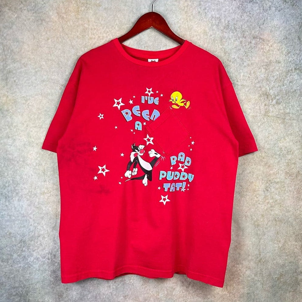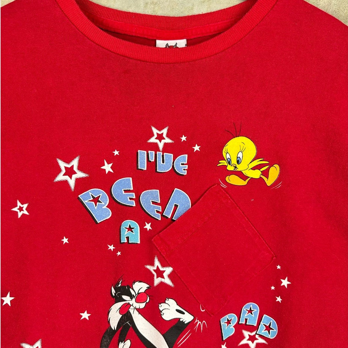 - 90s "ive been a bad puddy tat" looney tunes tweety graphic pocket tee