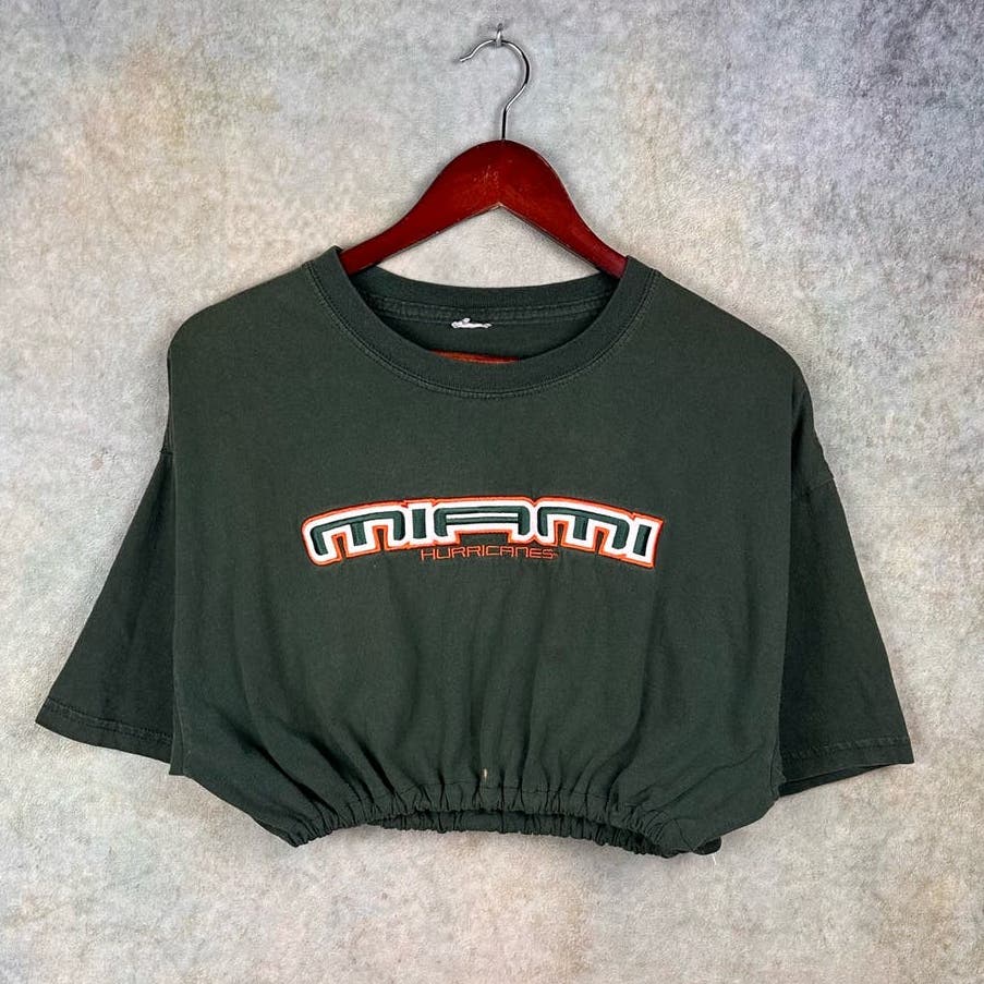 - 90s custom cropped reworked miami hurricanes embroidered tee