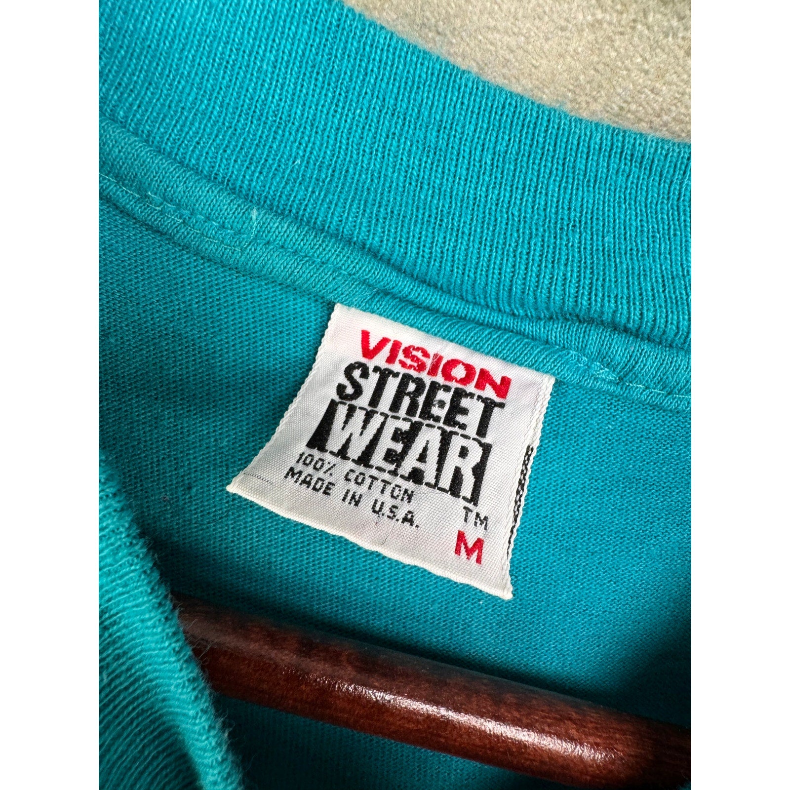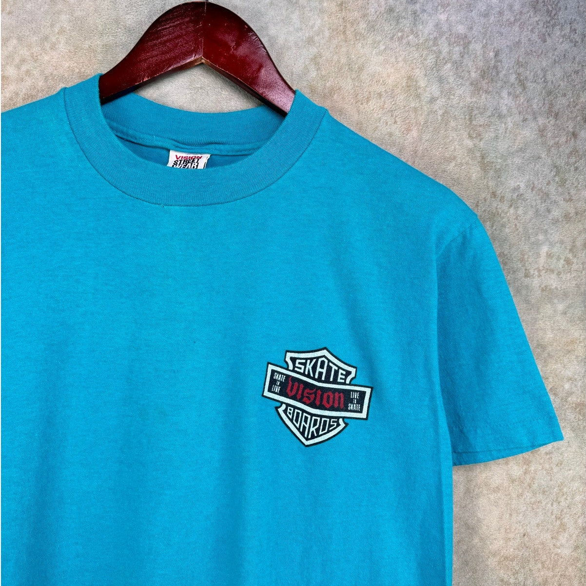 80s Rare Vision Street Wear Skate "harley" logo shirt, single stitch in blue