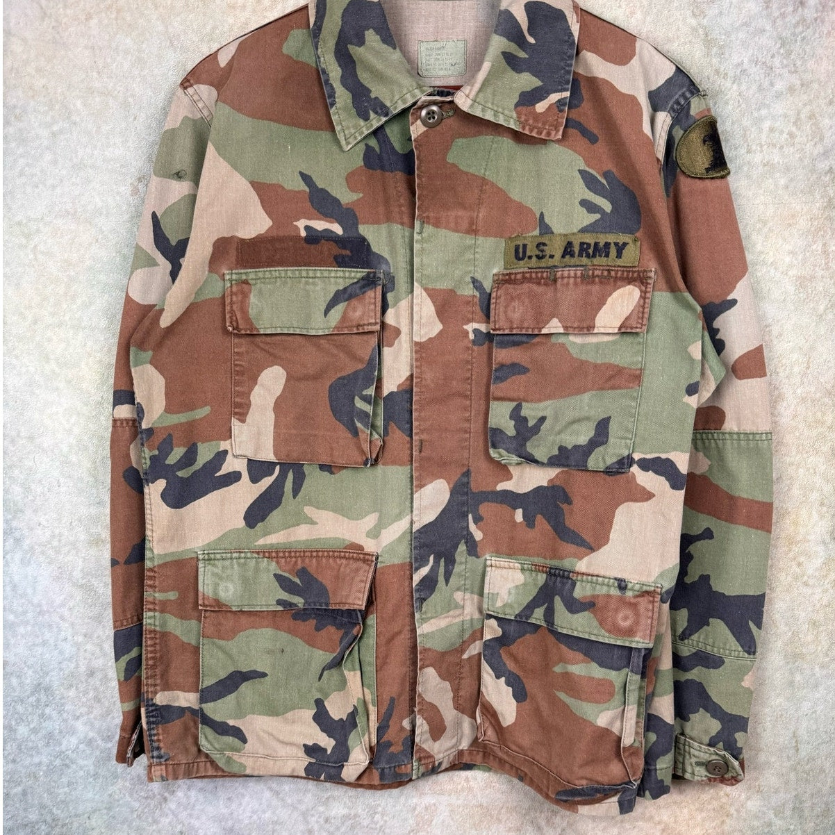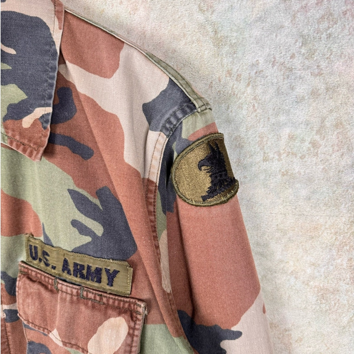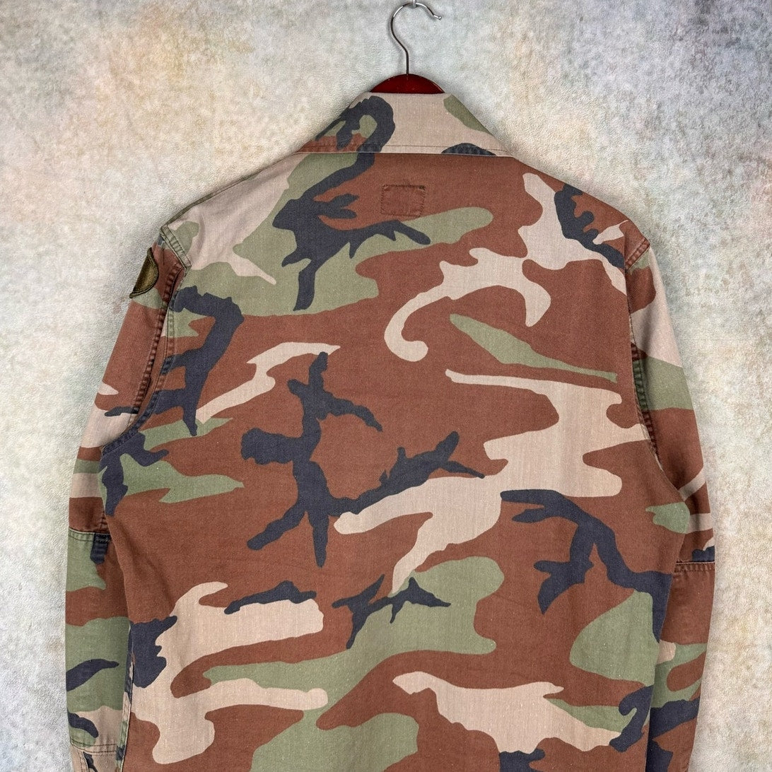 - 70s USA Military army camo button up long sleeve woodland camo shirt