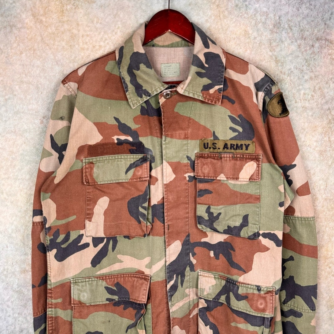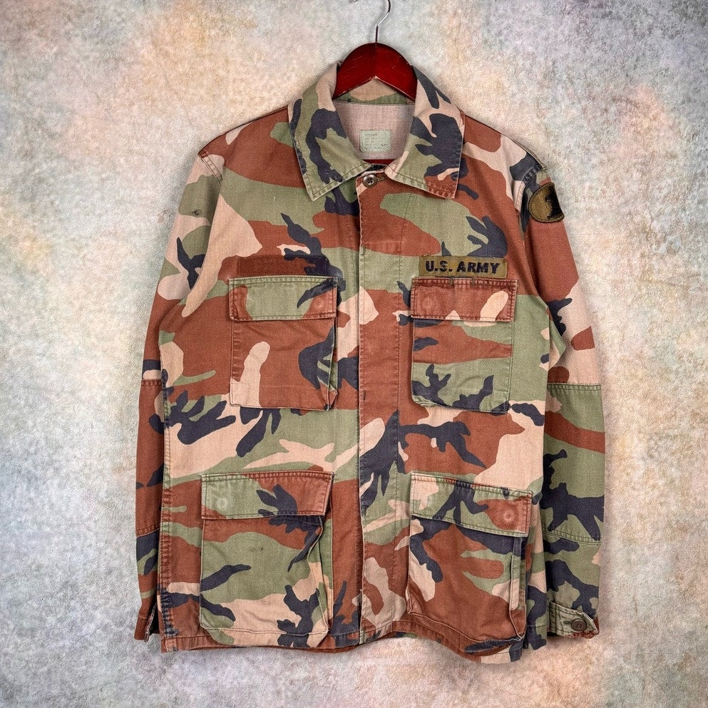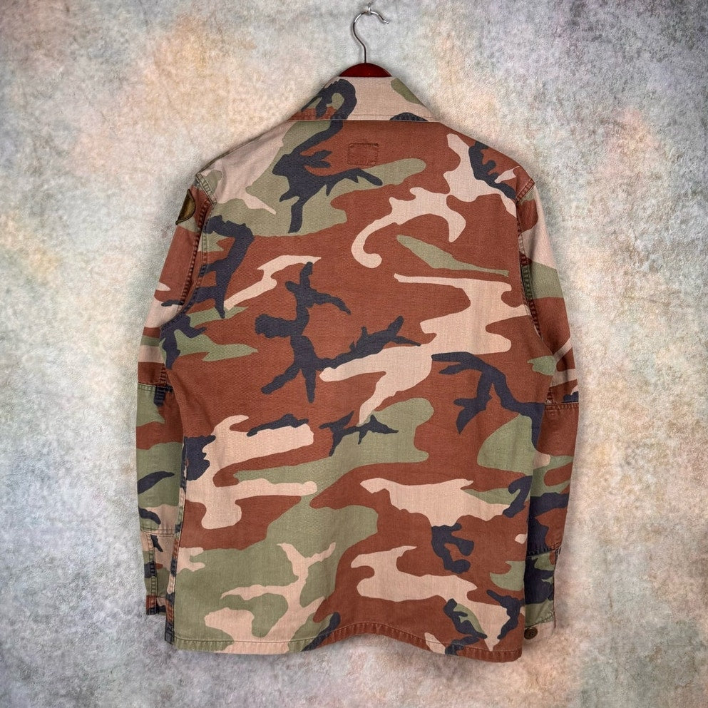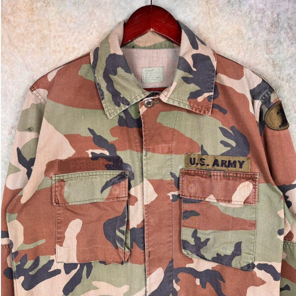 - 70s USA Military army camo button up long sleeve woodland camo shirt