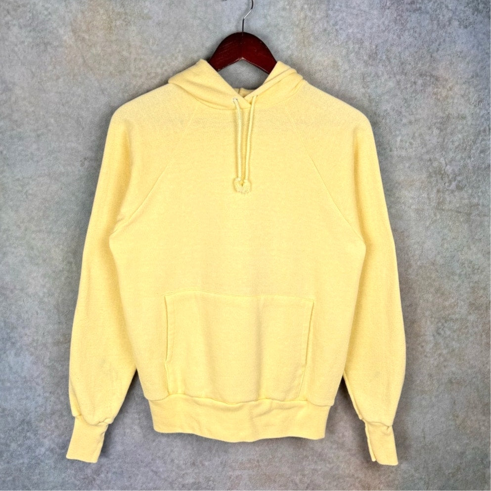 80s true vintage blank pastel yellow pullover hoodie sweatshirt
