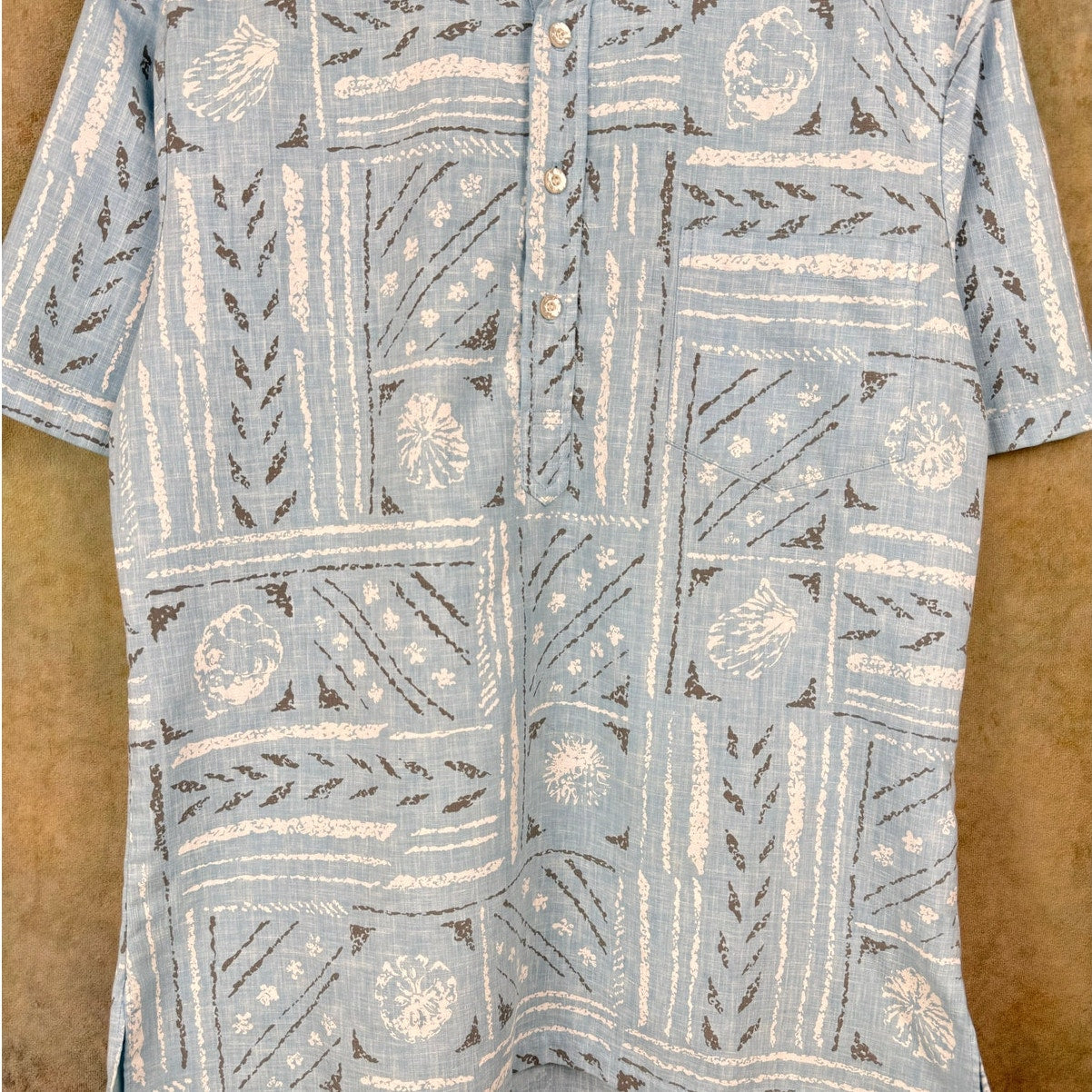80s Light blue tribal hawaiian print button up shirt