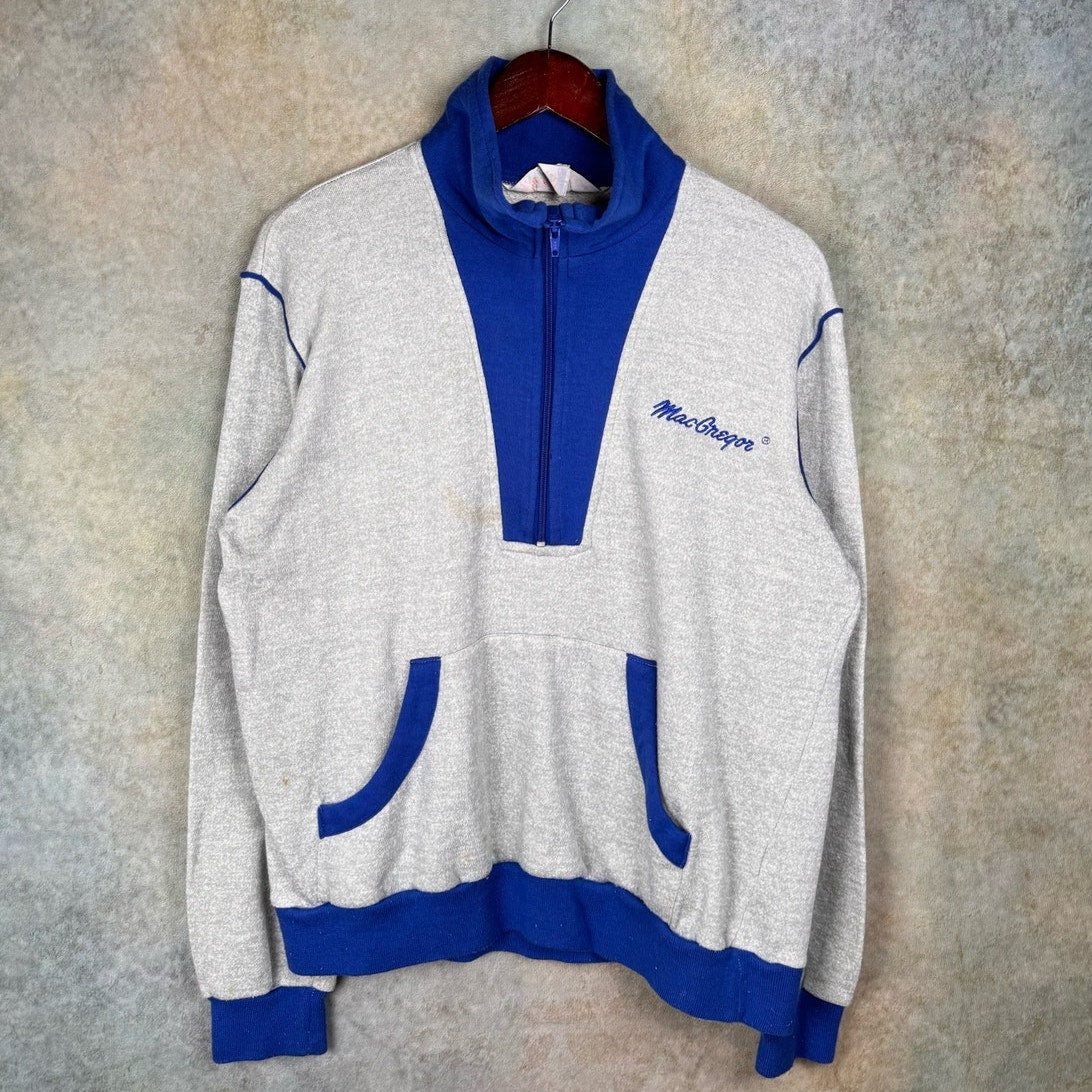 VTG 80s MacGregor Q Zip Sweatshirt Mens Sz L Gray Blue Pullover Sports Athletics