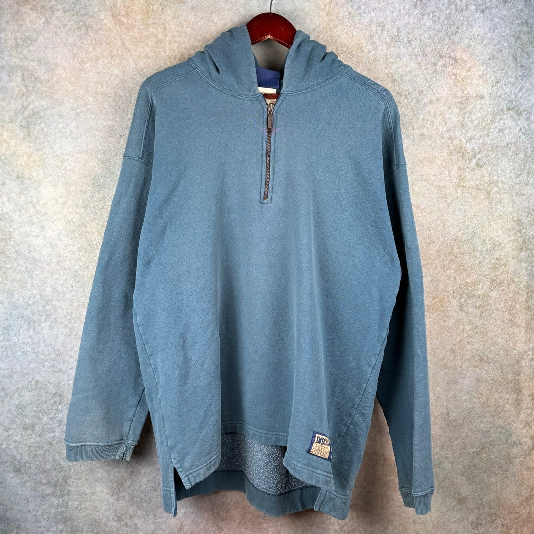 90s Discuss athletic blank pullover q zip hoodie in blue