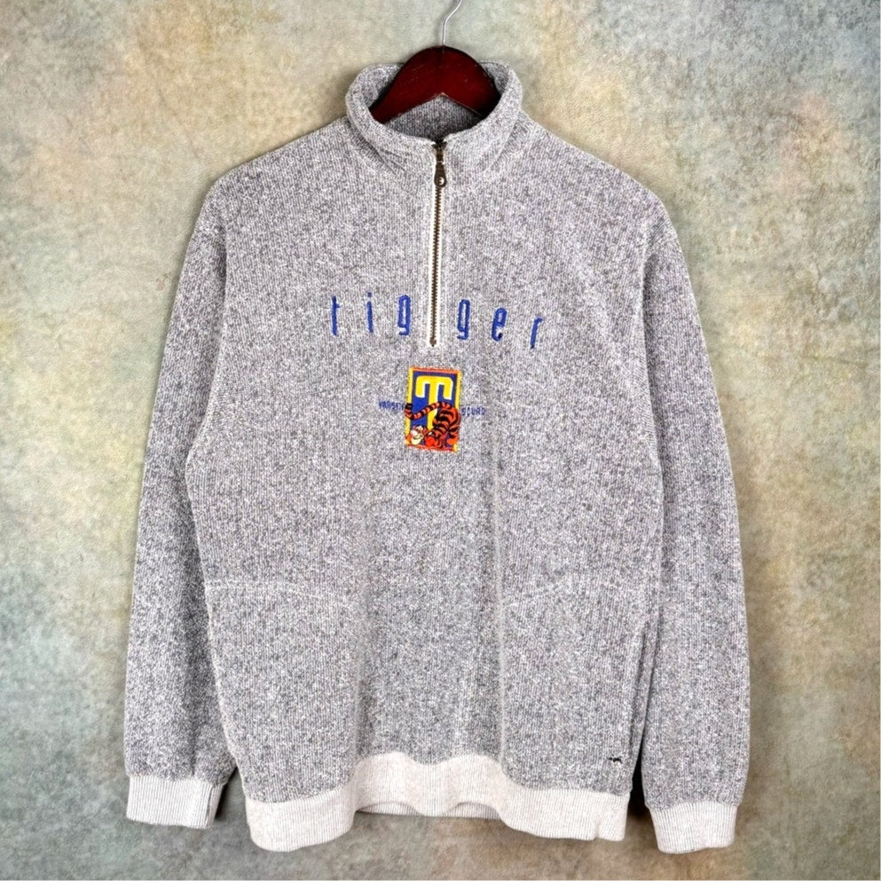90s Disney Store Tigger Pullover Q zip in gray w embroidered design