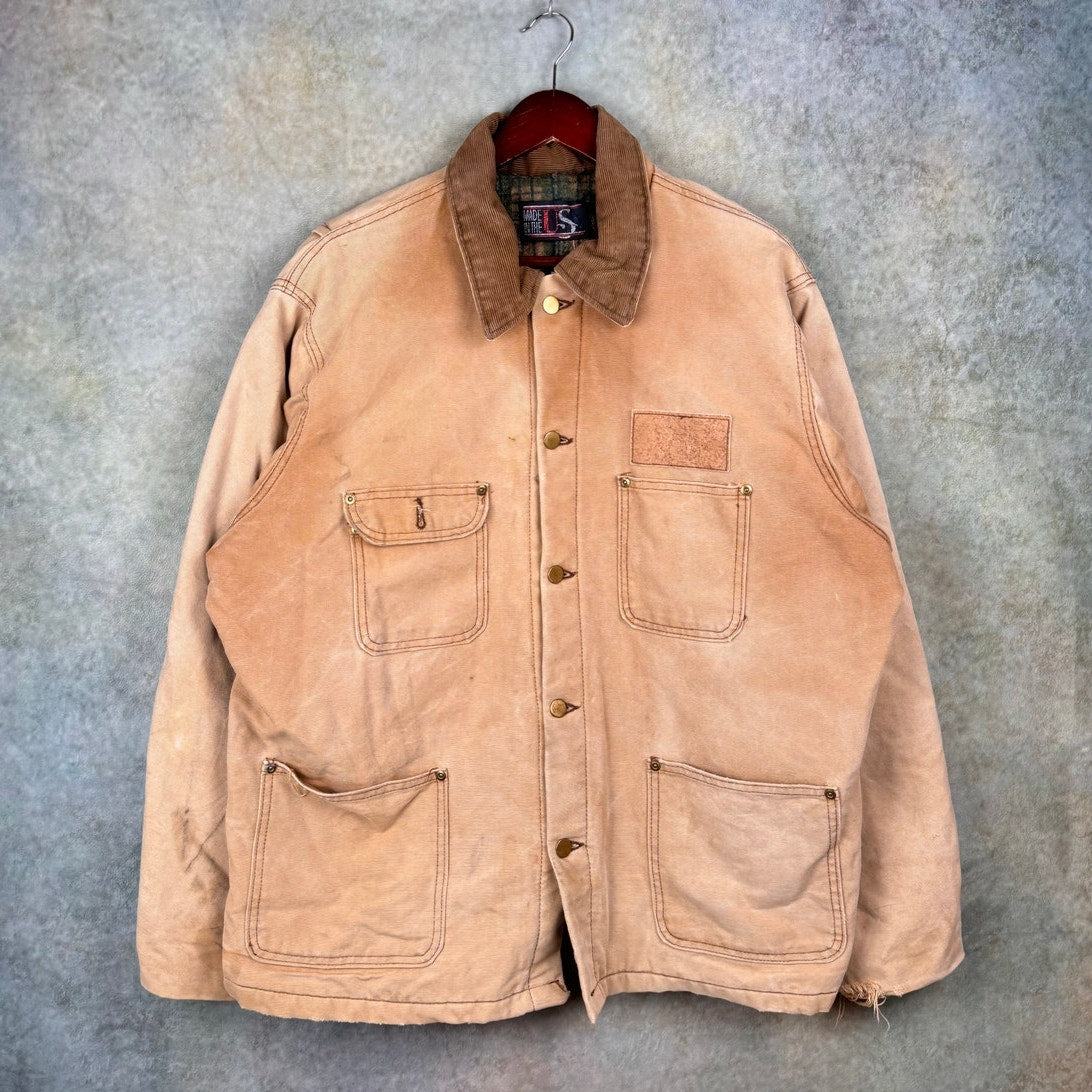 90s Carhartt Style Tan Flannel Lined canvas workwear jacket / coat