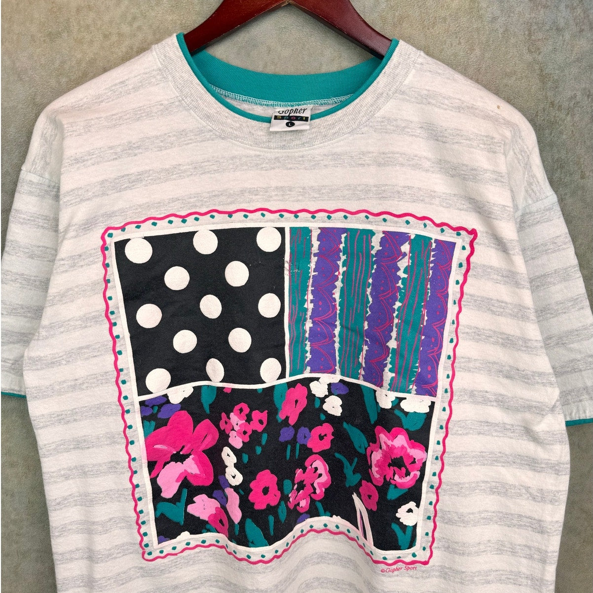 90s Striped Gray flower graphic tee