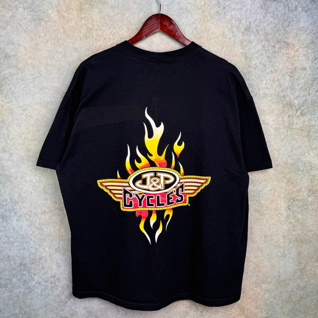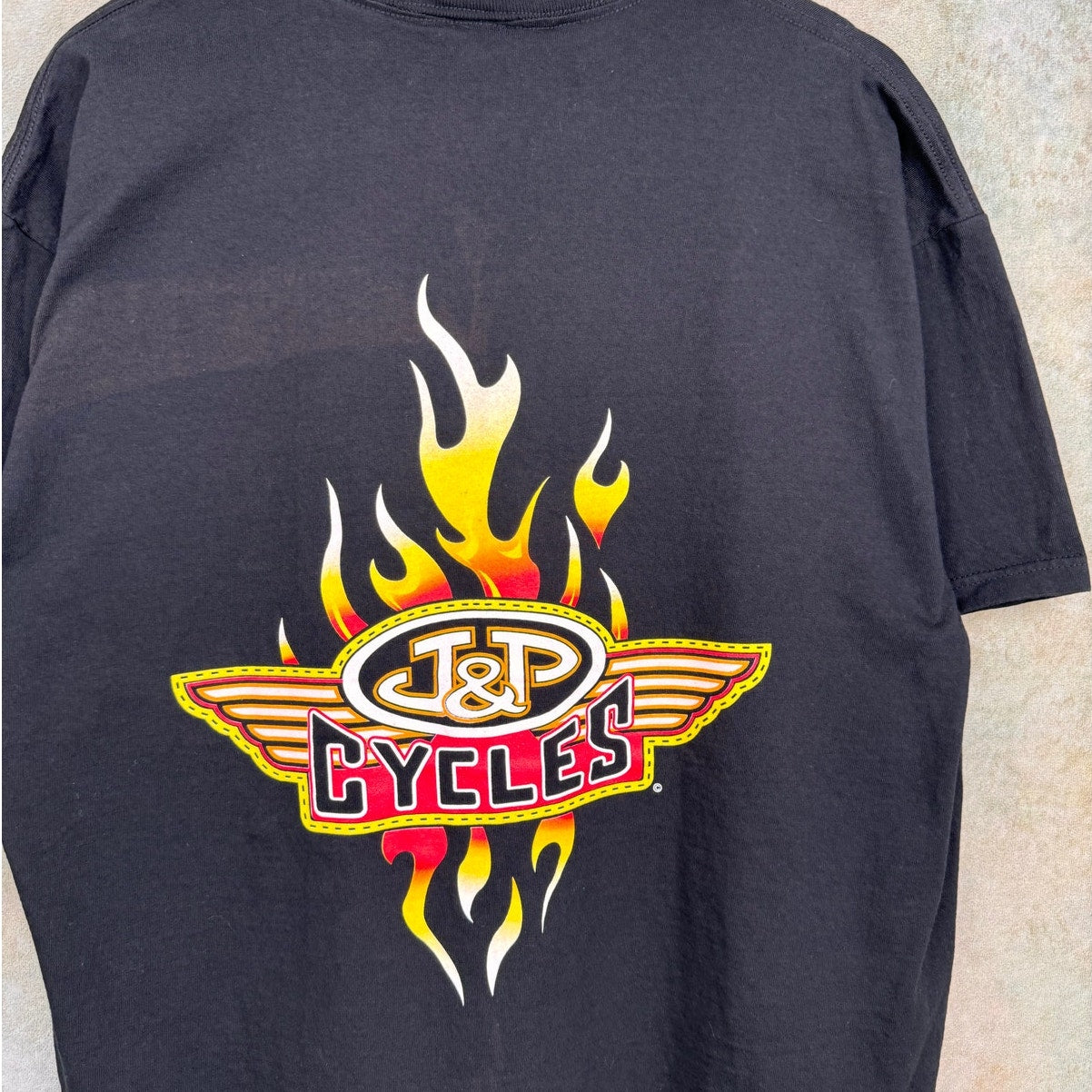 VTG 90s J&P Motorcycles Flame Biker T Shirt