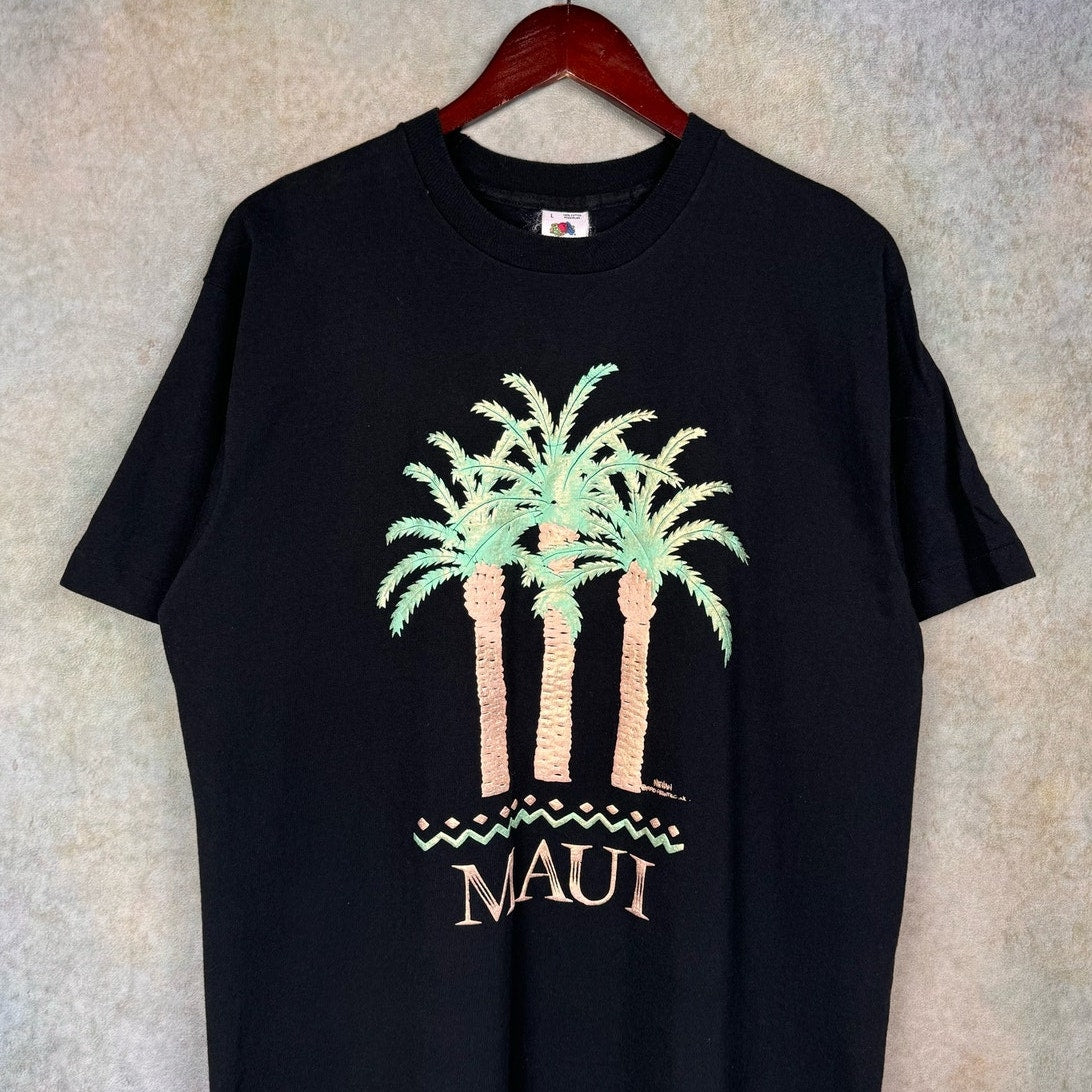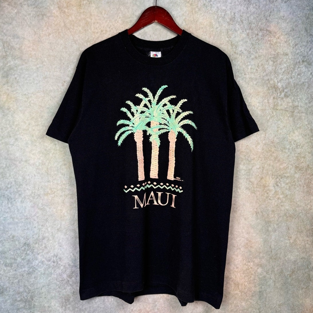 Back Puff Print 90s USA Made Maui Hawaii Palm Tree Tee Single Stitch