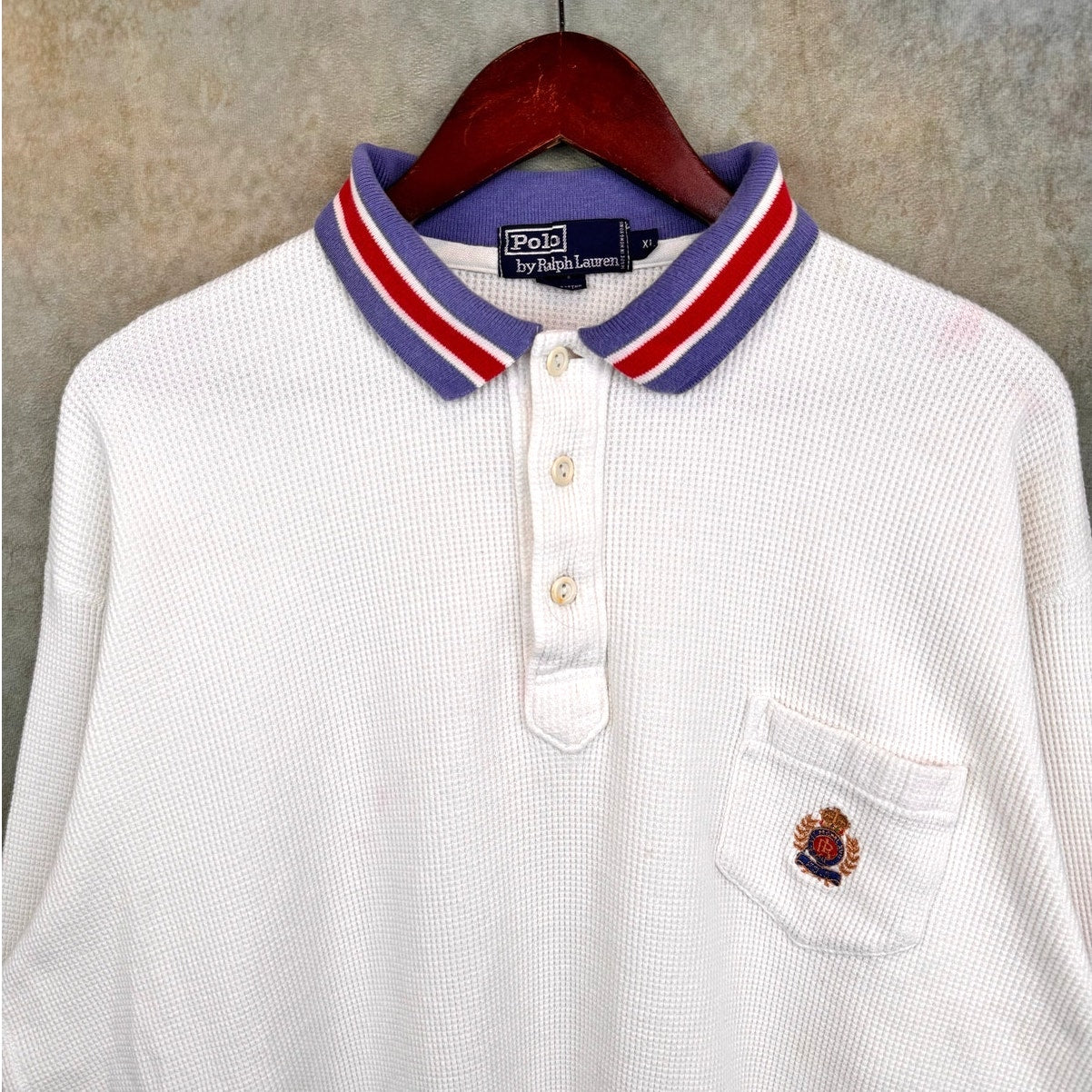 VTG 90s Polo Ralph Lauren Cookie Crest Thermal Shirt XL