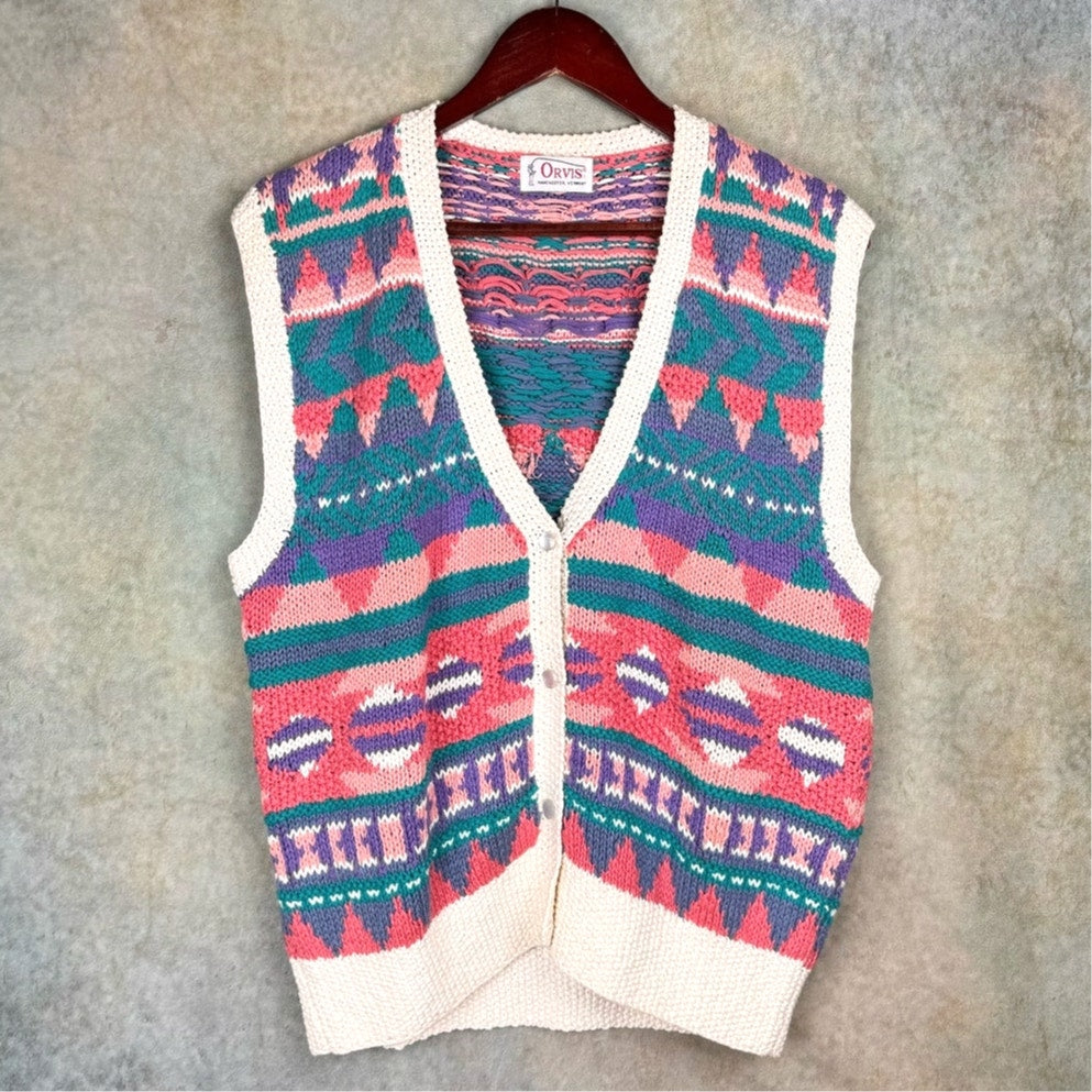 90s Orvis striped knit cardigan Vest Sweater w multicolor design