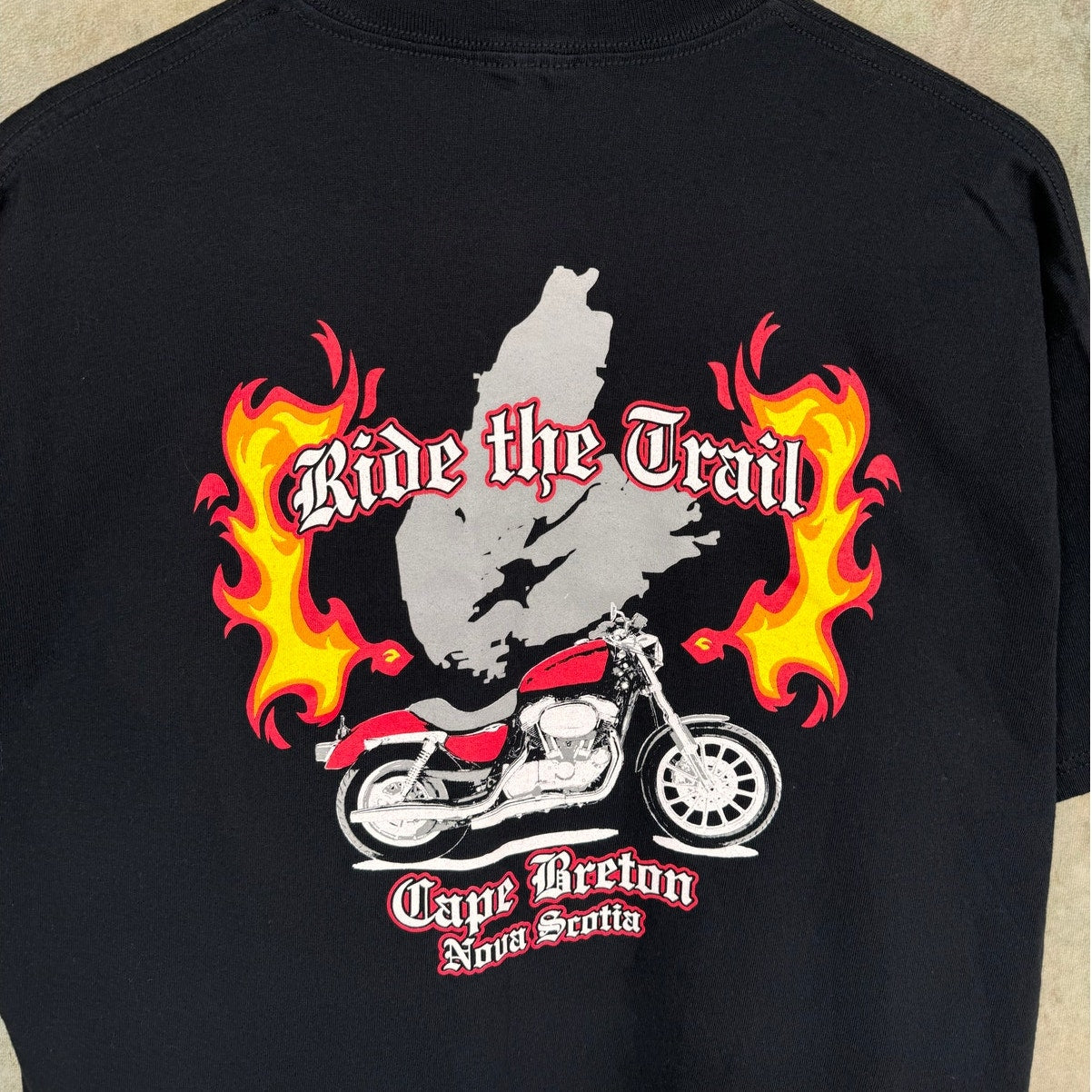 2000s Ride the trail biker Flame tee from cape breton nova scotia